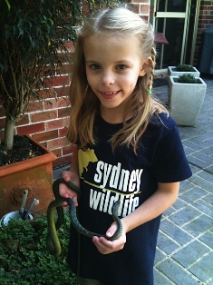 I bundled the kids into the car and bolted down the Wakehurst Parkway. The snake was down the side of the house in the dark. By torch-light we managed to get him into a bag. At this stage it was still too dark to identify the type of snake, but whatever he was, he was in a lot of trouble...