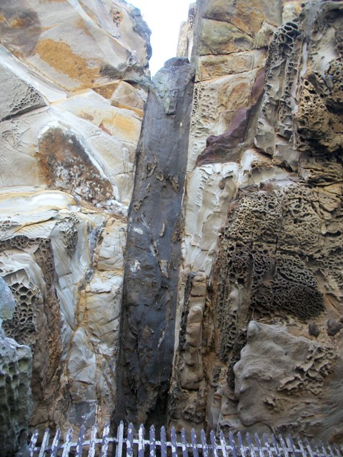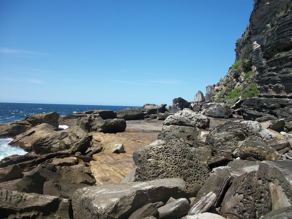 The North Avalon - Bangalley rock platform is a dangerous place to visit and we only ventured there to get the images to go with this page. The 2017 fall of rock at north Avalon Beach headland, sheering off the 'face' referred to by many as 'Michael' is proof that this section of cliff face is susceptible to changes, especially when minor earthquakes occur.