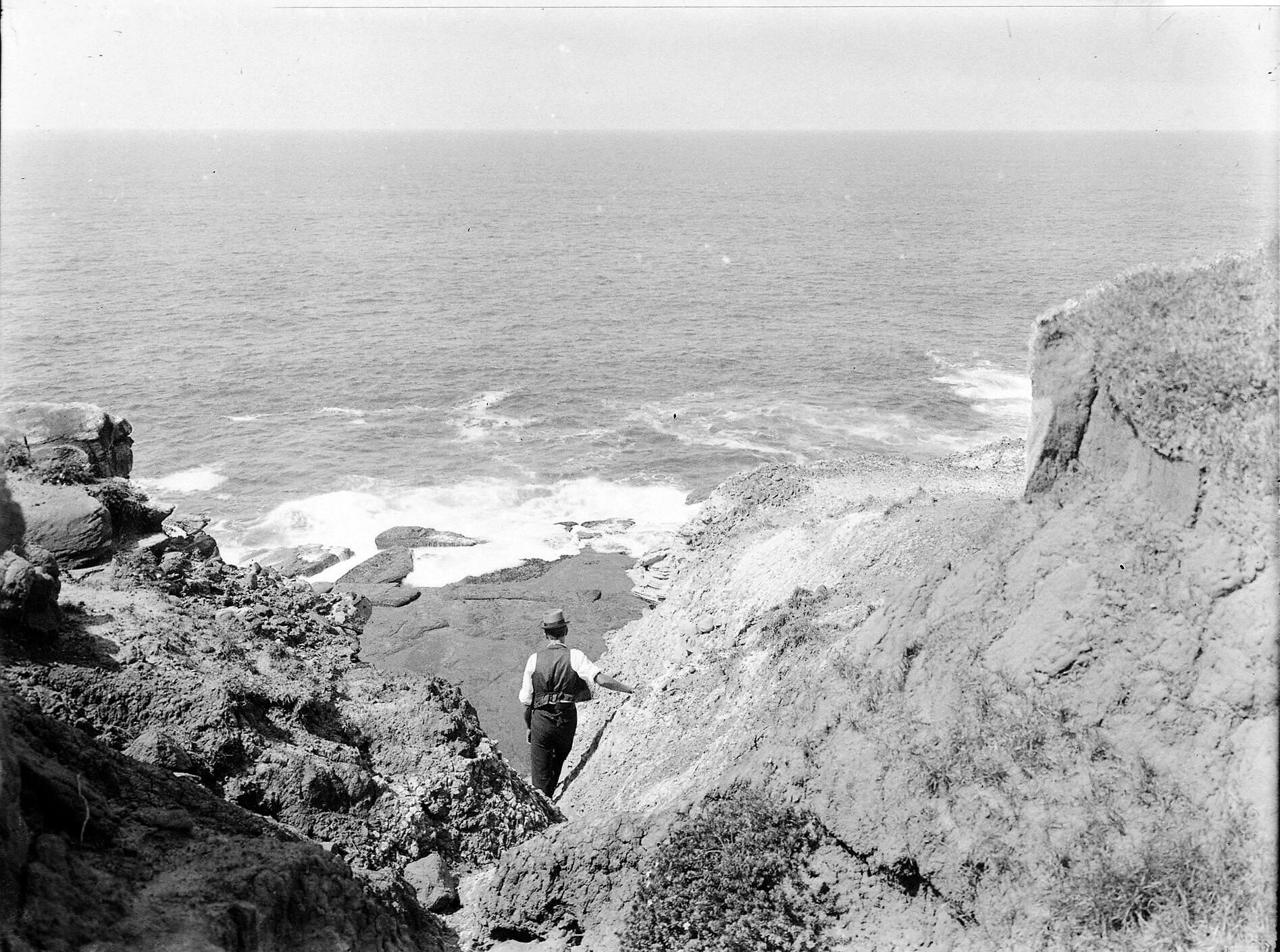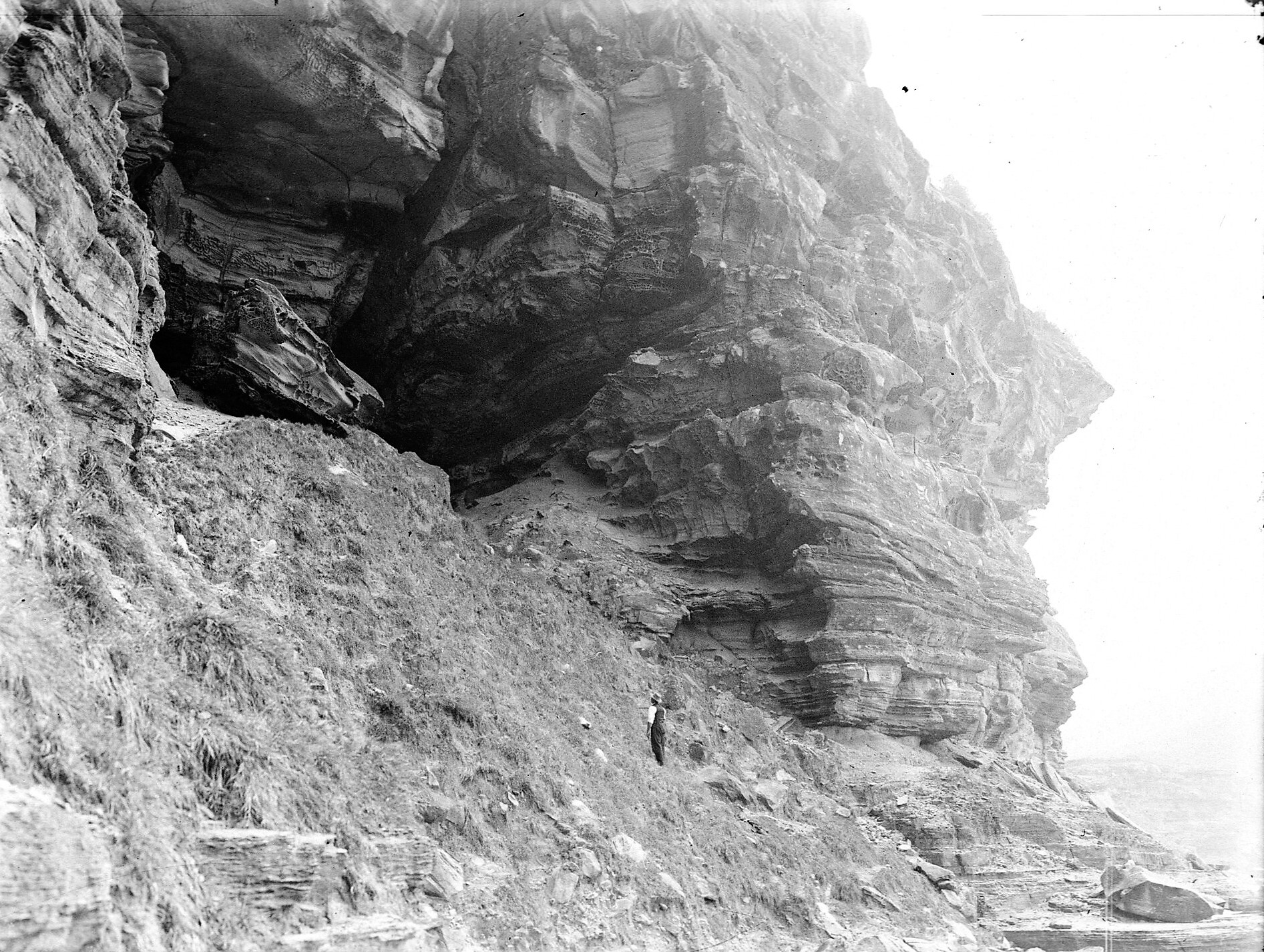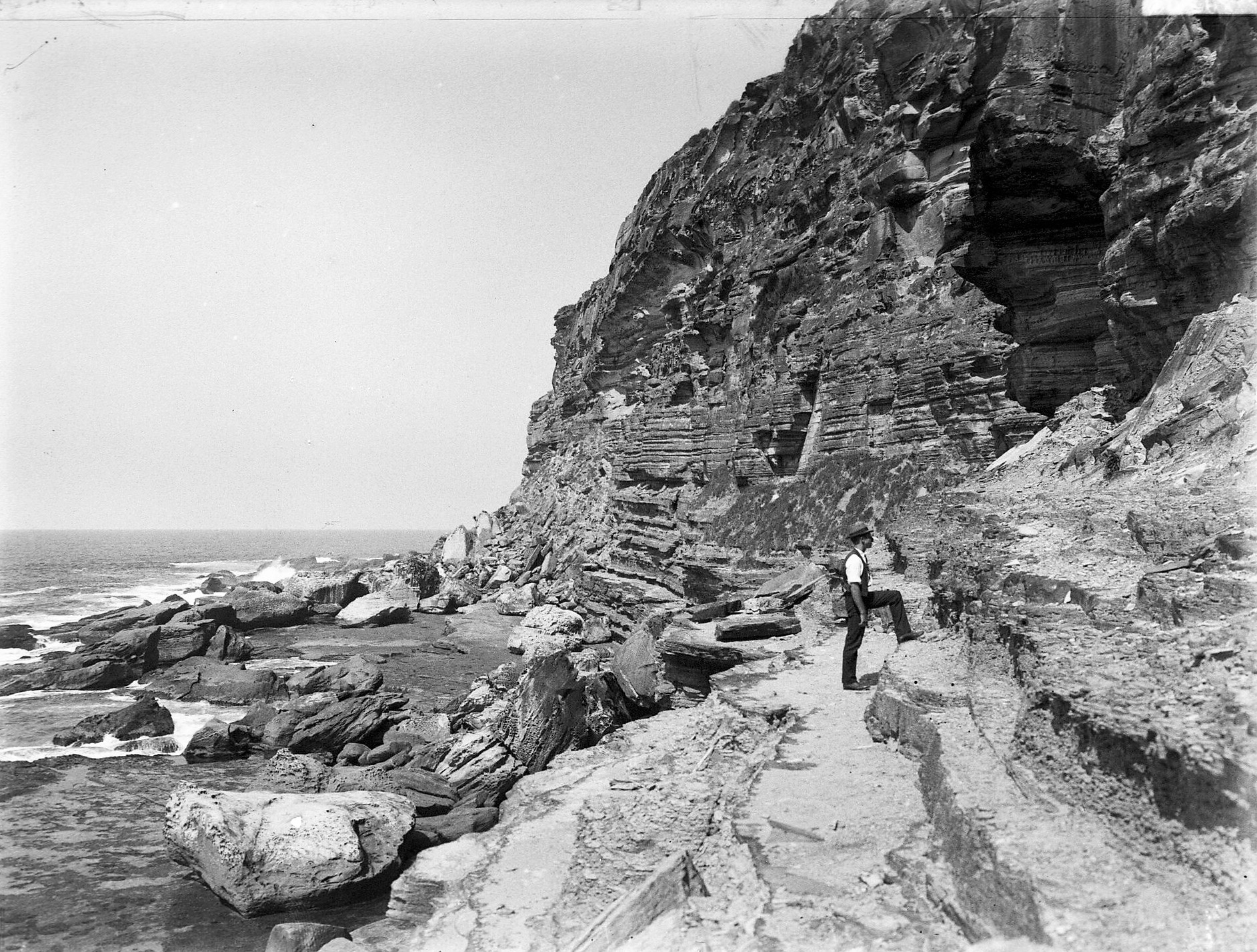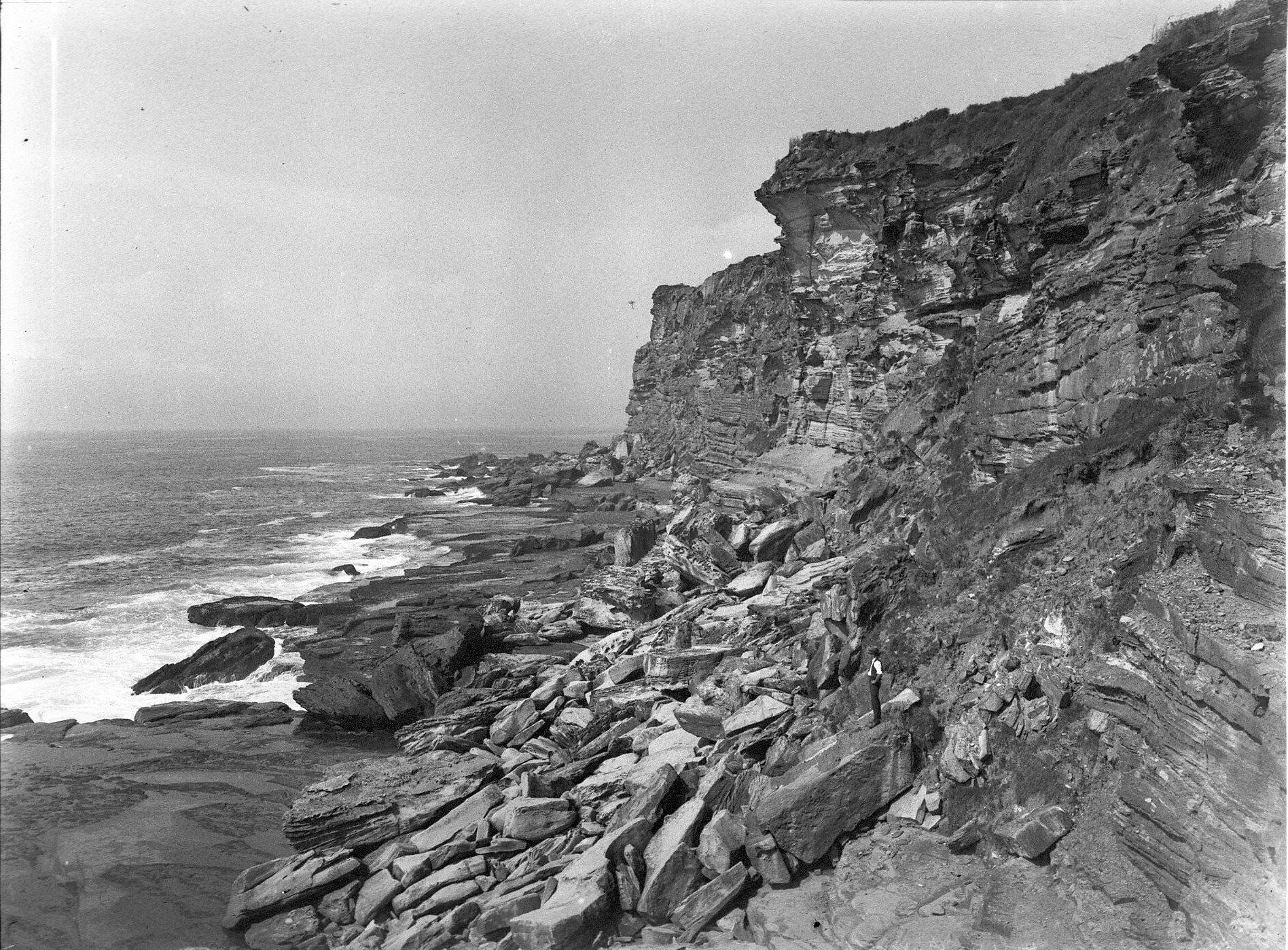 Below run a series of photographs taken in 1912 and digitised by NSW State Records and Archives with another 'local' obviously showing the photographer how to get there. When you take into account that these images were all glass plates, not too light, and the unwieldy camera required to use glass plates, this would have been quite a process for which we today are now grateful. These give us a window into the changing state of this section of our coastline.