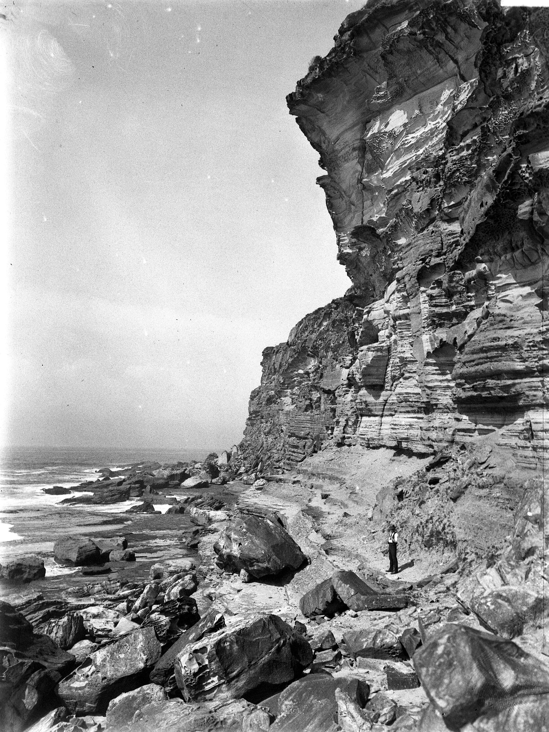 Title; Government Printing Office d1_12159 - Towering cliffs Hole in the wall - [From NSW Government Printer series: Newport]. Contents Date Range; 01-01-1912 to 31-12-1912. File: NRS-4481-3-[7/15965]-St4871.