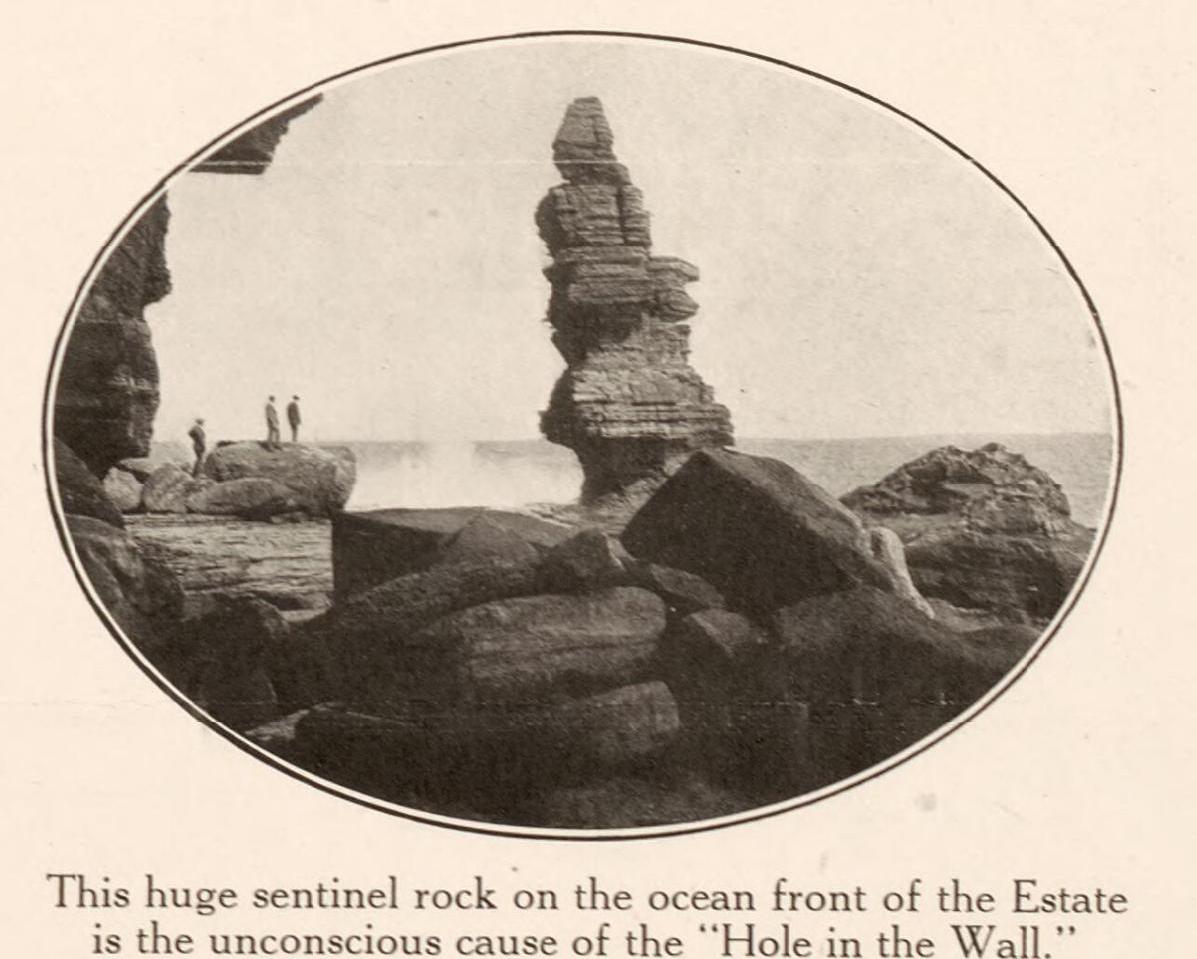 These images from a 1922 sales brochure show not only the change to 'The Pedestal' but also changes in the silhouette of North Avalon Beach headland itself: