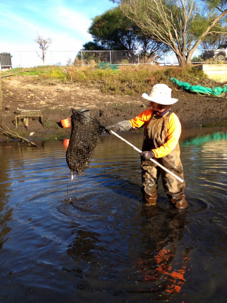 Here the DFE Team are catching and relocating Eels and Long-necked Turtles.