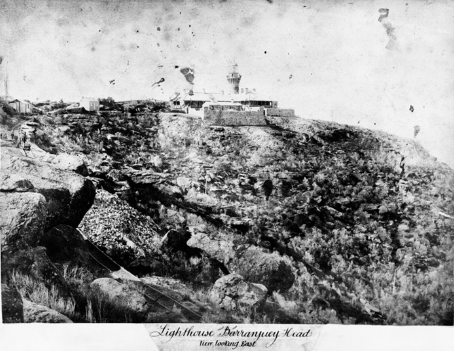 Barrenjoey , showing all the buildings that were once on the path to the tower- courtesy National Archives of Australia