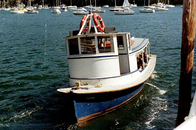 Some sources state the Church Point Ferry service began in 1924 others favour 1940. As the first ever school ferry in NSW commenced from this wharf in 1900 in the form of the launch Patonga, there was definitely a ferry service at Church Point at then. One of the first 1924 drivers was a demobbed Norwegian seaman, Einar Holst Fredriksen, AKA Fred. Sylvia and Keith Egan of Scotland Island were operating the Church Point Ferry Service by 1960 and a 1961 Women's Weekly article on board the Cowan shows some of the duties this entailed. By 1966 an ML Russell is listed as the owner of the Church Point Ferry Service in Warringah Council records. This man had offered to act as agent and supervisor of the wharf and been recommended to fulfil this capacity by the Shire’s Clerk. By 1969 popular local lad, Laurie Duff, at the tender age of 18 bought the Church Point Ferry Service. The service was running the Curlew, the Wagstaff, and the Elvina in 1967 when Mr Duff began.