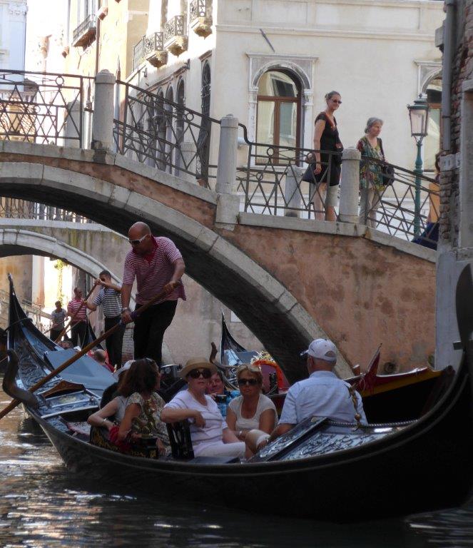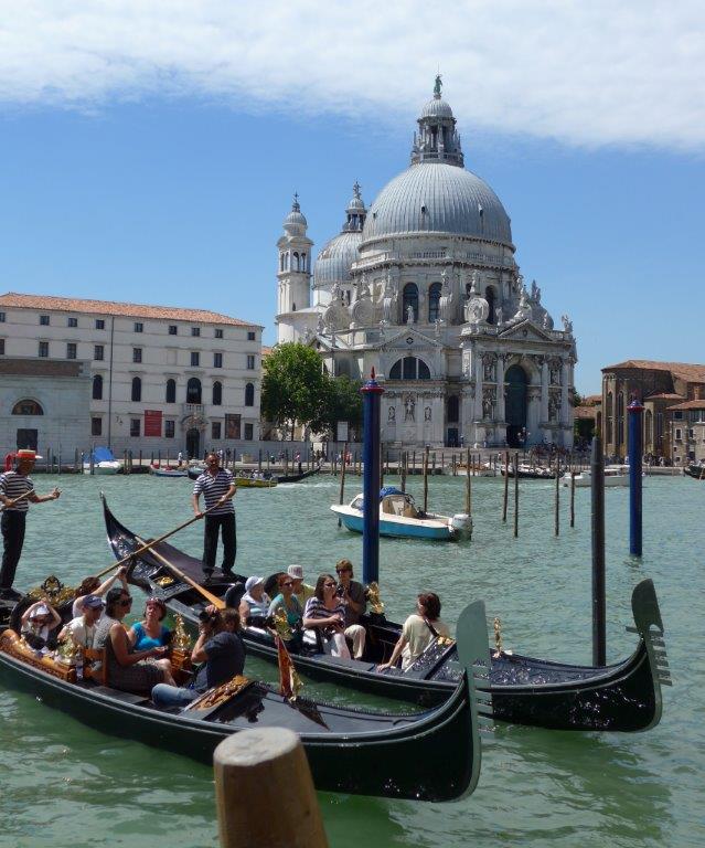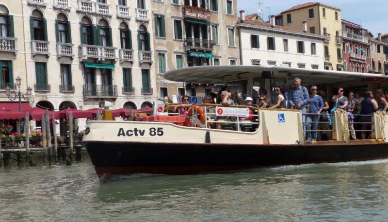When, on an evening in 1954, my wife and I arrived by train in Venice we were carried, with our luggage, from in front of the station (Ferrovia) to our hotel on the Riva degli Schiavoni in a gondola. After leaving the Grand Canal it became a magical experience with just the ripple of the gondolier’s oar in the water, gliding along the narrow canals and under the bridges with glimpses through the passing windows into the life of the Venetians. This doesn’t happen now. Transport from the station is by water taxi, or visitors with their bags can board a waterbus at one of the landing stages at the station - different ones for different lines – depending on where they have to go.