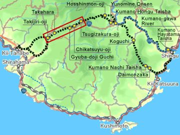 Takijiri oji to Takahara, Takahara to Nonaka, bus to Hongu Taisha, Typhoon broken trail, Yunomine, Kyoto.