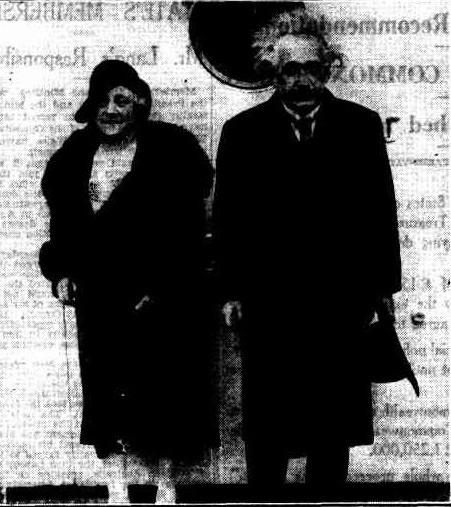 Photo from: FAMOUS SCIENTIST IN U.S.A. Professor Albert Einstein, who announced at Pasadena a new cosmology resulting from his unified field theory, arriving at New York with his wife. FAMOUS SCIENTIST IN U.S.A. (1931, February 7). The Sydney Morning Herald(NSW : 1842 - 1954), p. 14. Retrieved from http://nla.gov.au/nla.news-article16752087