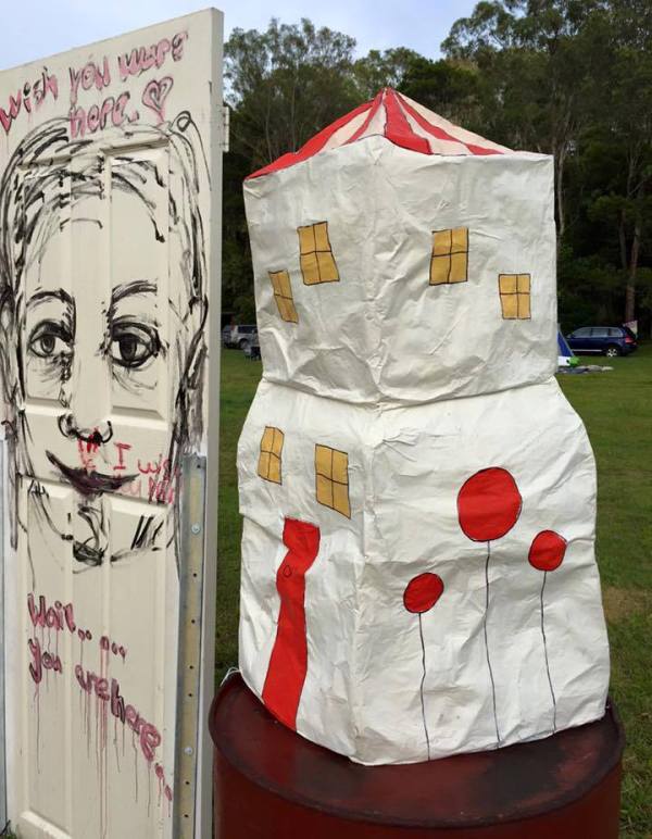 "The "Wild Temple of Yam" was inspired by the temples of Burning Man, and built as a tribute to my father, who passed away last year. The temple concept was to recreate the original temple - Stonehenge - in a quirky form as 'Doorhenge'. The theme for the festival was Cirque, so the characters were all painted to look like aging circus props." Bea said this week.