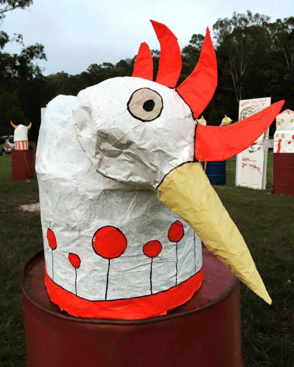 The materials for the temple were generally sourced for free. 18 white doors from Gumtree + a couple of old doors from Balmain & Reverse Garbage. 12 x 44 gallon drums courtesy of Mosman City Council Children's Services. Approx 40 star pickets thanks to various Yammers. And 12 door snakes, used as weights inside the sculptures. To get everything to the festival site took 2 trailer loads and 1 truck load!