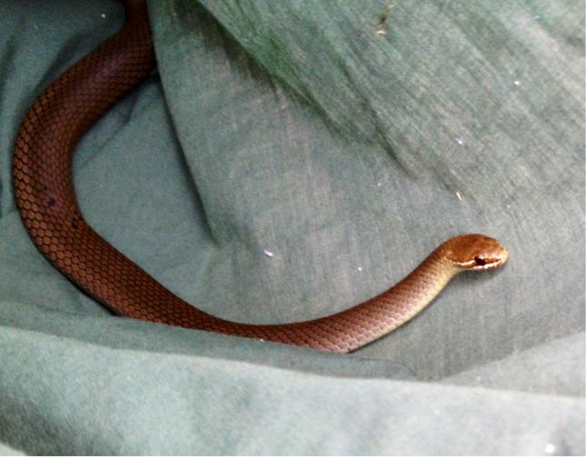 They are often seen on the ground which surprises people – given that they are tree snakes. They come to ground to prey on frogs, skinks and fish.