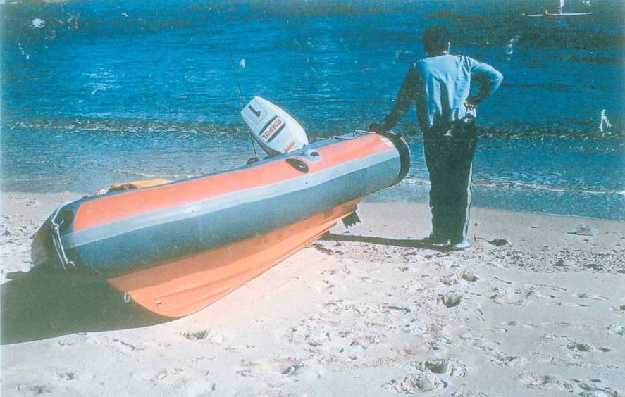 As can be seen in the photos, a trailer for an IRB need only be of light construction and can usually be manhandled on the beach.