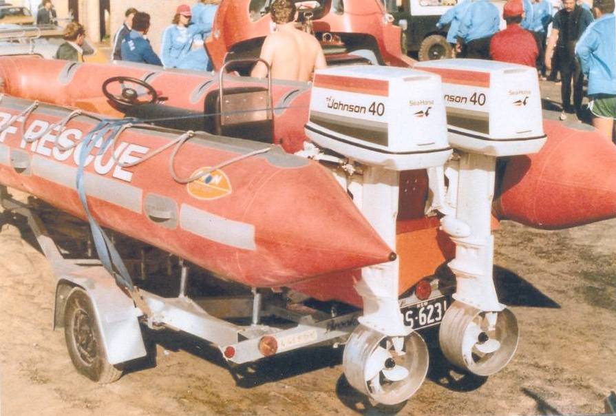1976, Col Laughlin took over as ‘Power Craft Adviser; to New South Wales. He realised that clubs needed help with their I.R.B’s. They were inexperienced in driving, roll over procedures, and engine maintenance. If nothing was done after a roll over, within a week the motor would be seized up and unable to be repaired. He formed a power craft panel to run an education programme so that clubs could be taught to solve their own problems. He built a purposeful trailer to carry spare parts and equipment especially for outboard motors. The panel was available to the eleven branches, with each being visited twice a year. Club members could pull their own motors down under supervision, and reassemble them with replacement parts on the spot. The panel consisted of four to six members, each visit according to the number of club members to be trained. The panel consisted of Col. Laughlin, Brian Wilson, Jan Cartright, Mike Sawalski, Greg Danvers, Ray McNeil, Barry Rafferty, Bob Cox, Graham Howard, Andrew May, Cliff Spong, Tom Laws and John Fallon. With 118 surf clubs you could see why it too seven years to complete. What a task!