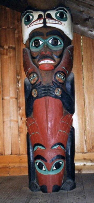 Totem poles are monumental sculptures carved by indigenous peoples of the Pacific Northwest Coast of North America (Alaska in the United States and British Columbia in Canada). Typically they are carved from the highly rot-resistant trunks of Thuja plicata (popularly known as western red cedar). They are not of religious significance but communicate aspects of native culture, such as familiar legends, clan lineages, and notable events or myths. They also may serve as architectural features, welcome signs for visitors to the village and even as mortuary receptacles. The meanings of the designs on totem poles are as varied as the cultures that made them and their placement and importance lay in the observer’s knowledge and connection to the meanings of the figures.