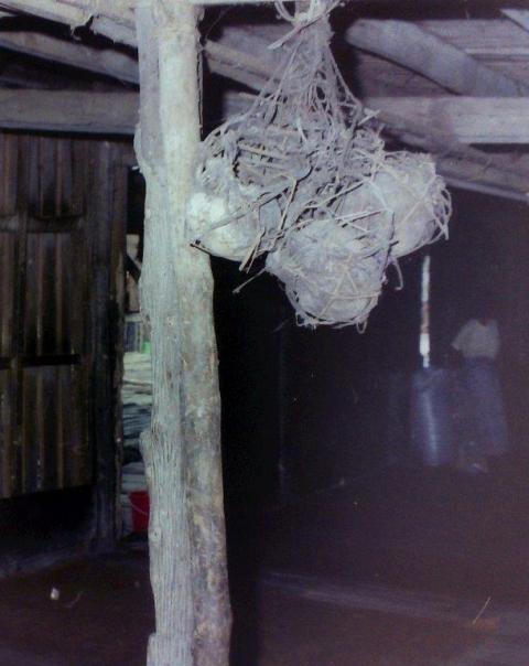 On arrival, as guests, we were entertained in the public area of the longhouse where we were served the traditional welcoming drink, tuak– an alcoholic drink – made from cooked glutinous rice mixed with homemade yeast for fermentation. In the evening the chief and members of his family demonstrated traditional ceremonies and dances before our evening meal which we ate sitting on the floor with the family. We slept in a separate longhouse provided for guests and were woken as the sun rose by the crowing of roosters, and chicken digging and pigs snorting under our floor.