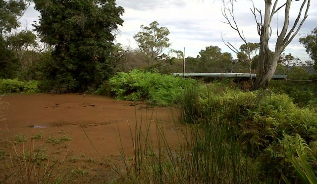 The Helipad outside the Ranger's Headquarter's at Waratah Park has been dug up and turned into a pond. - Image by: Bronwyn Hanna, Image copyright owner: Heritage Division