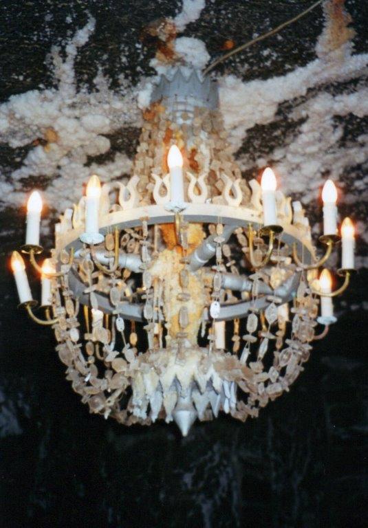 There are four salt-hewn chapels, statues, bas reliefs and monuments all cut out and decorated by miners over the years. An outstanding showpiece is the ornamented Chapel of St. Kinga (Kaplica Św Kingi) measuring 54 m. by 18 m. and 12 m. high. 20,000 tonnes of rock salt were removed in its construction. Every element in the chapel, including altars, wall carvings and even chandeliers, is of salt.