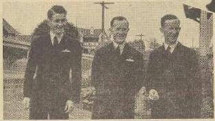 With him are his sister-in-law, Mrs. Wilfrid Kingsford Smith (left), three of