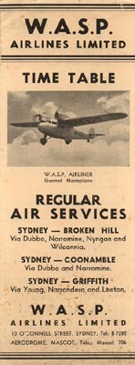 WASP Air Lines, like many other Kingsford Smith ventures in aviation, had problems The service to Leeton was ended in 1936 when a Tugan Gannet aircraft used by W.A.S.P. Airlines crashed on 26 February 1936 in the Cordeaux Dam area but continued elsewhere: