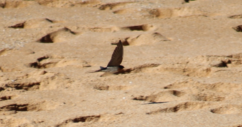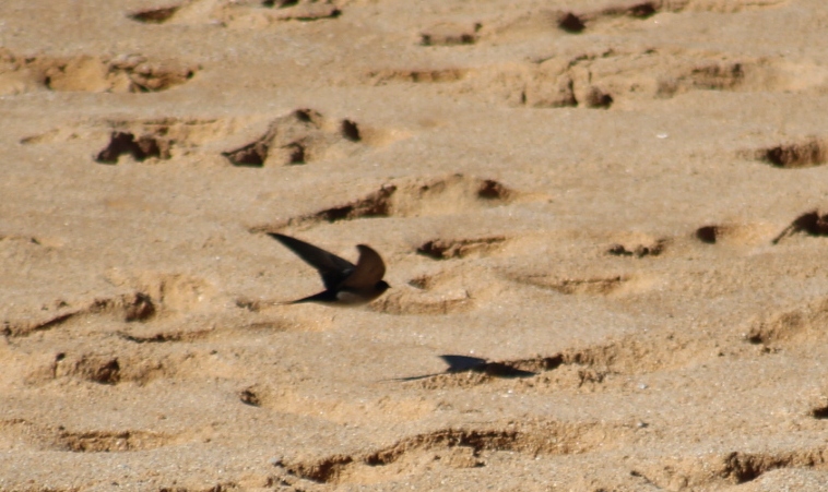 Swallow flitting over the sand, Avalon Beach, 8.7.2013. Photo by A J Guesdon, 2013.