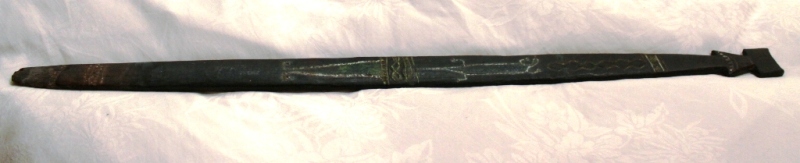 The artefact shown here was purchased in the mid ‘70’s, along with a spear, thrown into the bush and not retrieved, for its beauty. Collecting aboriginal artefacts, whether hunting weapons, paddles or the beautiful woven bags used to carry food in, has become increasingly popular for the history imbued in them, the skill shown in making them, for the various kinds which indicate which part of Australia they derive from, and for the art some have which indicates totems as much as the skill of the creators.