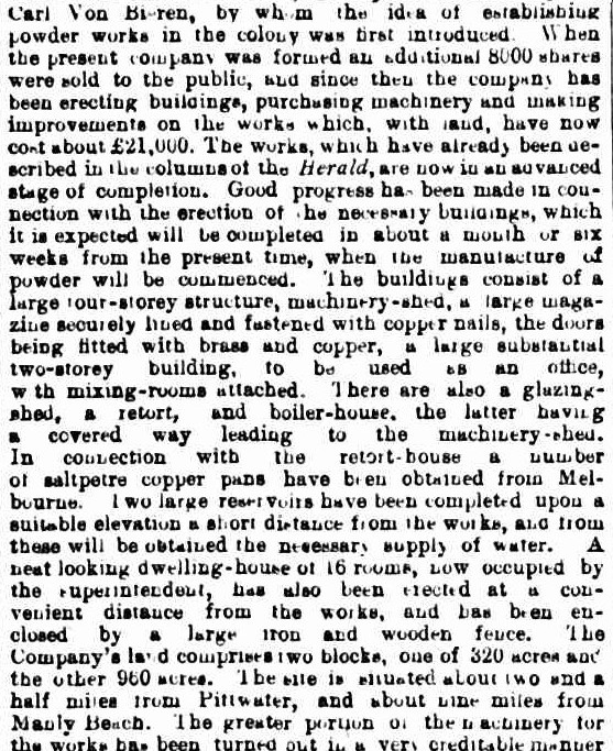 Narrabeen Powder Works: NARRABEEN POWDER WORKS. (1885, June 20). The Sydney Morning Herald (NSW : 1842 - 1954), p. 10. Retrieved from http://nla.gov.au/nla.news-article28362489