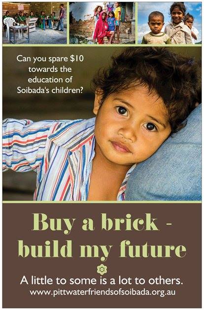Please remember – volunteers are always welcome! Also check out our web page to “Buy a brick” to help build educational facilities. Find out more and donate online at: www.pittwaterfriendsofsoibada.org.au